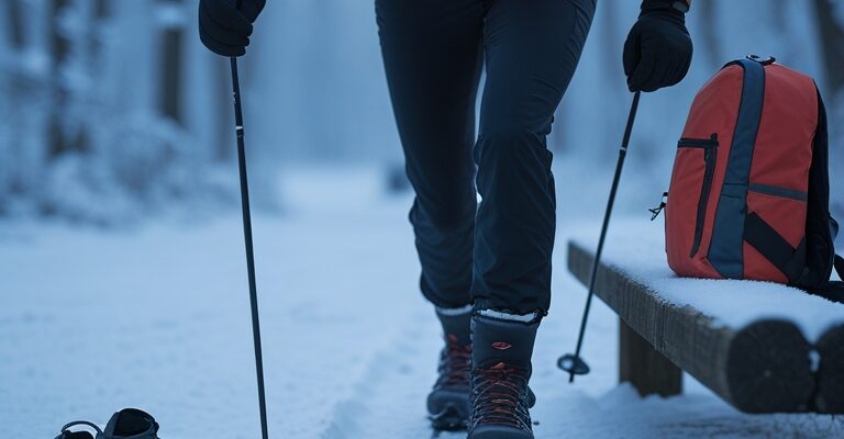 - obuwie: buty zimowe z głębokim bieżnikiem lub nakładki antypoślizgowe,